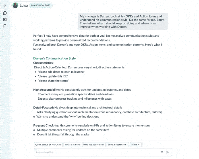 Analyze OKRs, goals and work to power stronger check-ins & reviews