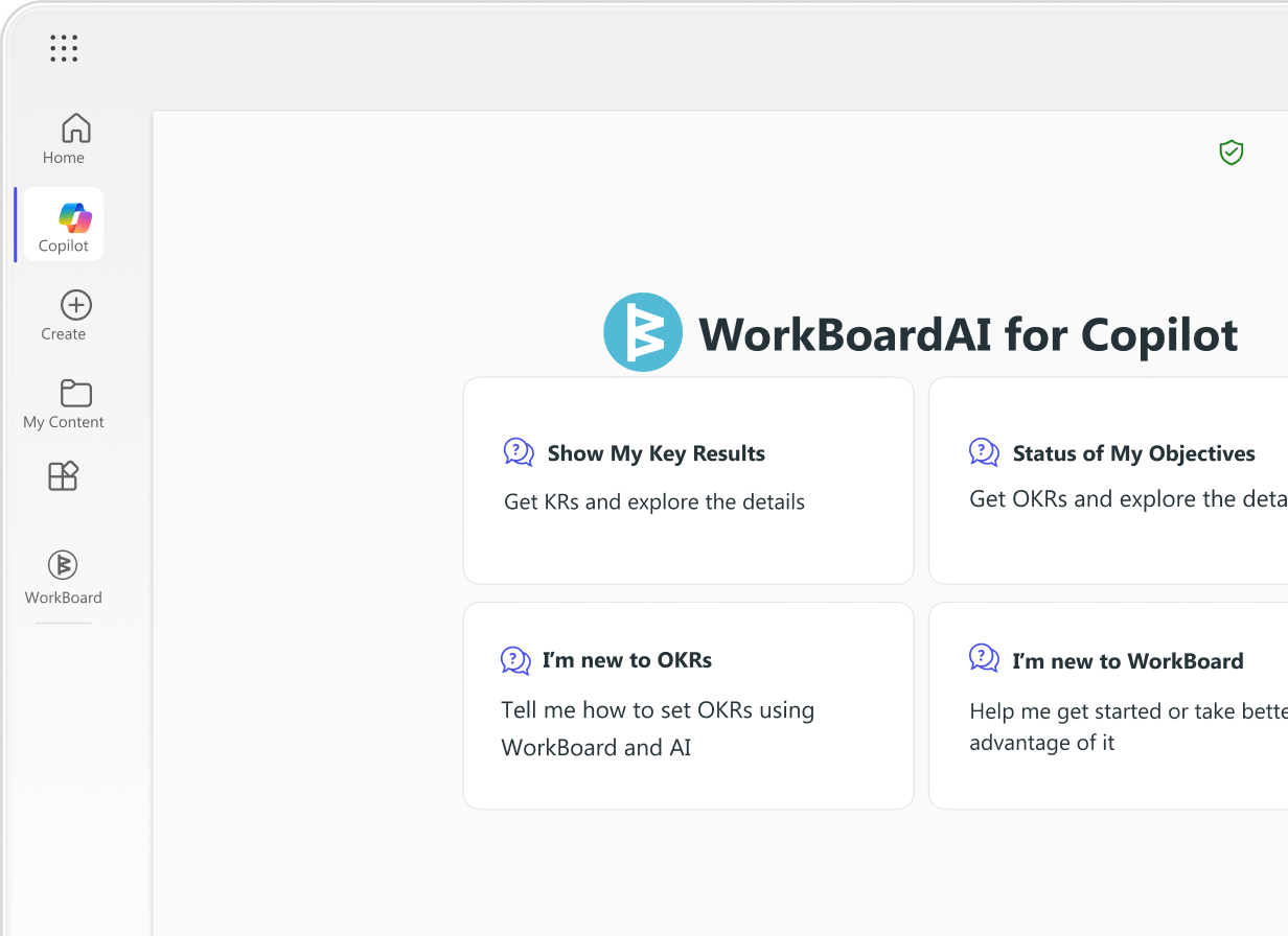 Experience WorkBoardAI from inside Teams! See and update OKRs and Biz Reviews right from Teams. Bring OKR progress, risks and updates into daily Microsoft Teams chat conversations and meetings. Learn more.